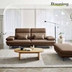 다우닝 플랫 3.5인 스윙 전체 통가죽 소파+스툴 (색상:브라운) > 가구