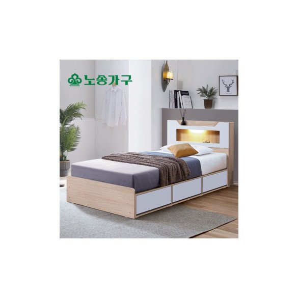 노송가구 국내제작 LED조명14종 수납 3단서랍 침대 고급 볼레일 서랍 > 침대/매트리스