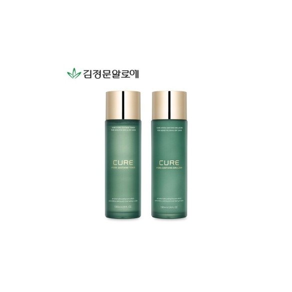 (2종SET)(15+10%쿠폰+사은품) 김정문알로에 큐어 하이드라 수딩 토너+에멀젼 130ml > 스킨케어